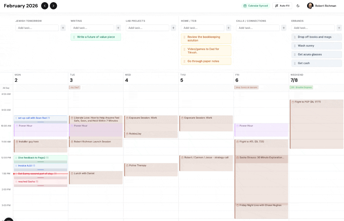 I wanted to mix a to-do list with my calendar, to plug in work when I have spots available. There are a few that already do this but they don’t feel good to me (and I would have to pay).